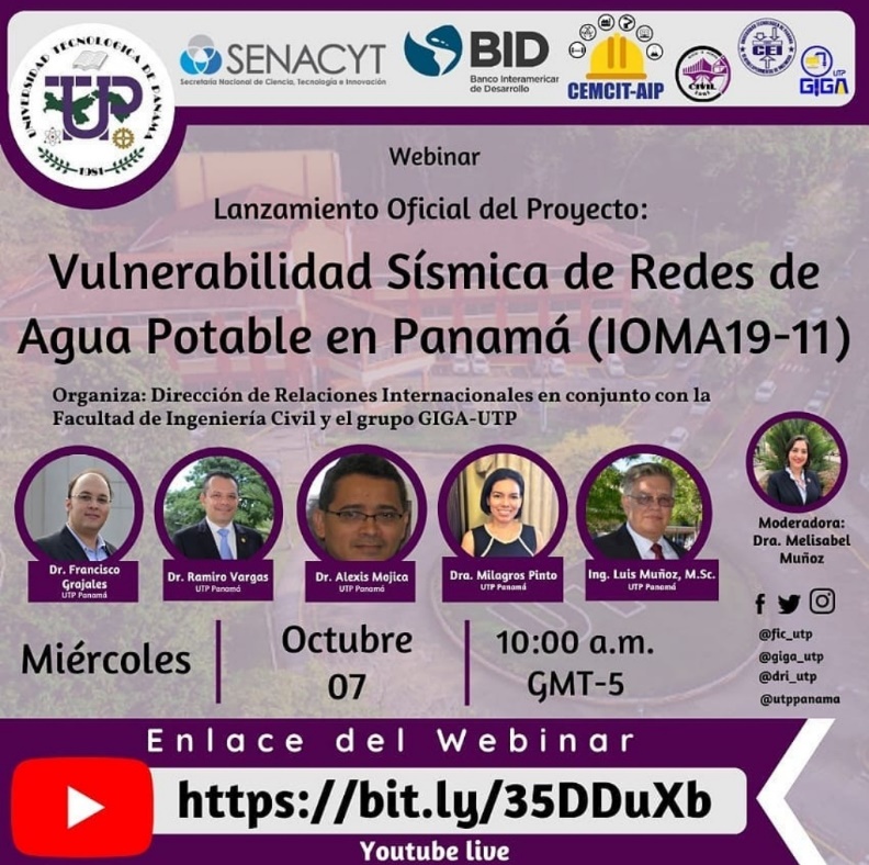Para el mes de octubre del 2020 se realizó el lanzamiento oficial del proyecto IOMA19-11, el cual tiene por objetivo principal un estudio integrado del comportamiento de sistemas de suministro de agua potable ante la posible ocurrencia de sismos, el cual permita establecer un marco de referencia para la evaluación de la vulnerabilidad y resiliencia de acueductos con miras al desarrollo de normativas y reglamentos aplicables al territorio panameño.
