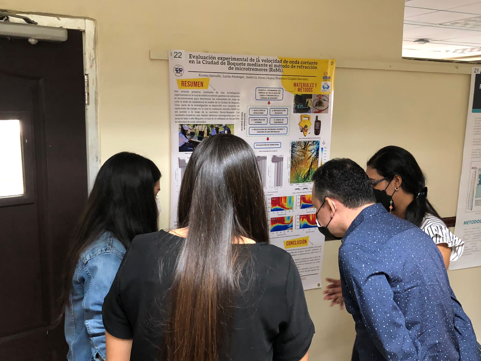 En el marco de la primera fase de la Jornada de Iniciación Científica 2022, JIC-FIC 2022, estuvieron participando las estudiantes Saddy Li, Krysna Samudio y Larisa Almengor, con el proyecto titulado "Evaluación experimental de la velocidad de onda cortante en la Ciudad de Boquete, mediante el método de refracción de microtremores (ReMI)".