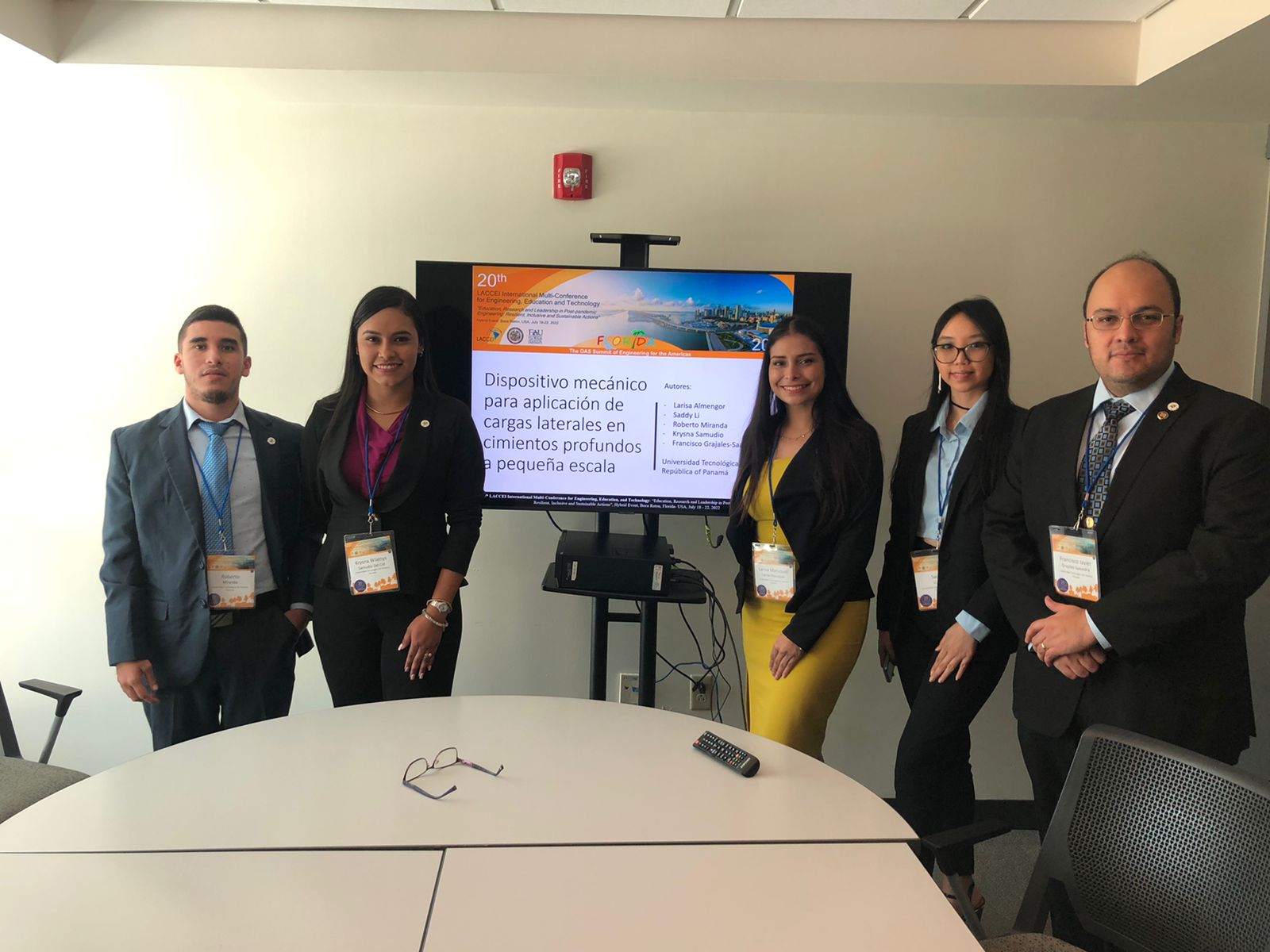 En el mes de julio de 2022 los estudiantes ganadores de la Jornada de Iniciación Científica 2021, Larisa Almengor, Krysna Samudio y Roberto Miranda, asesorados por el Dr. Francisco Grajales y en compañía de la Ing. Saddy Li, estuvieron presentando en la Multiconferencia Internacional LACCEI2022 su proyecto titulado “Dispositivo Mecánico para la Aplicación de Cargas Laterales en Cimientos Profundos a Pequeña Escala”, la cual fue llevada a cabo en Boca Ratón, Estados Unidos.